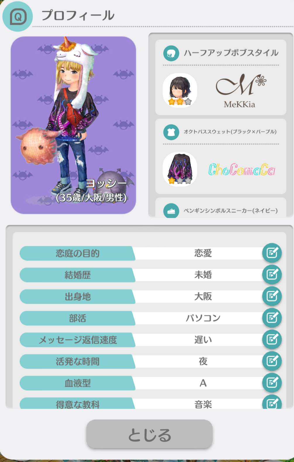 自分のプレイヤーID: 498027535 性別:男 年齢:35 既婚未婚:未婚 目的:友達と恋愛 住所:大阪市 布施駅前居ます 体型:普通 身長:165 お酒:飲むよ 煙草:吸るよ 仕事:パチンコ店お掃除 趣味:アニメ・カラオケ・ 好きなタイプ:好きになった人 メンヘラ人 気にしない